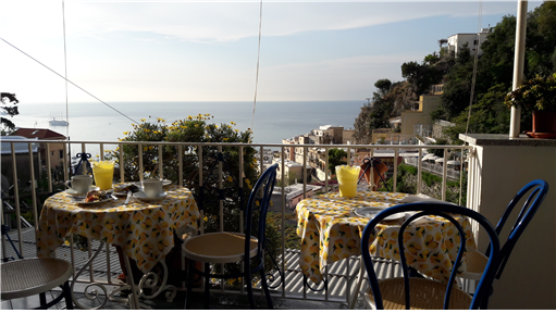 나폴리에서 탄 셔틀 택시 기사가 우리를 포지타노 언덕을 내려오다 포사포사 호텔 앞에서 내려준다. 그리고 바로 위의 길을 가리키며 두 번째 집이 우리가 묵을 집이라고 말한다. 전화를 하자 중년의 주인 여자가 달려 내려와서 덥석 내 가방을 들고 간다. 길게 이어진 계단을 걸어 올라갔다. 그리고 세 채가 나란히 절벽 위에 서있는 집 첫 번째 문을 열고 정원으로 안내했다. 아래 해안과 반대편 해안까지 바라보인다. 주인 마리아는 여기가 식당이고 매일 아침 식사를 할 수 있다고 말하며 우리가 묵을 곳으로 안내했다. 밖으로 나가 골목 위 세 번째 대문을 열었다. 하얀 복도를 들어가 첫째 방이었다. 하얀 침대 옆에 열린 창문으로 해안 풍경이 보인다. 그리고 침대 발치엔 화장대와 옷장 그리고 옆엔 샤워장과 화장실이 있다. 며칠을 지내기엔 안락한 방이다. 게다가 오래된 나무 덧창을 열면 아래로 골목길이 보이고 멀리 바다가 보인다.